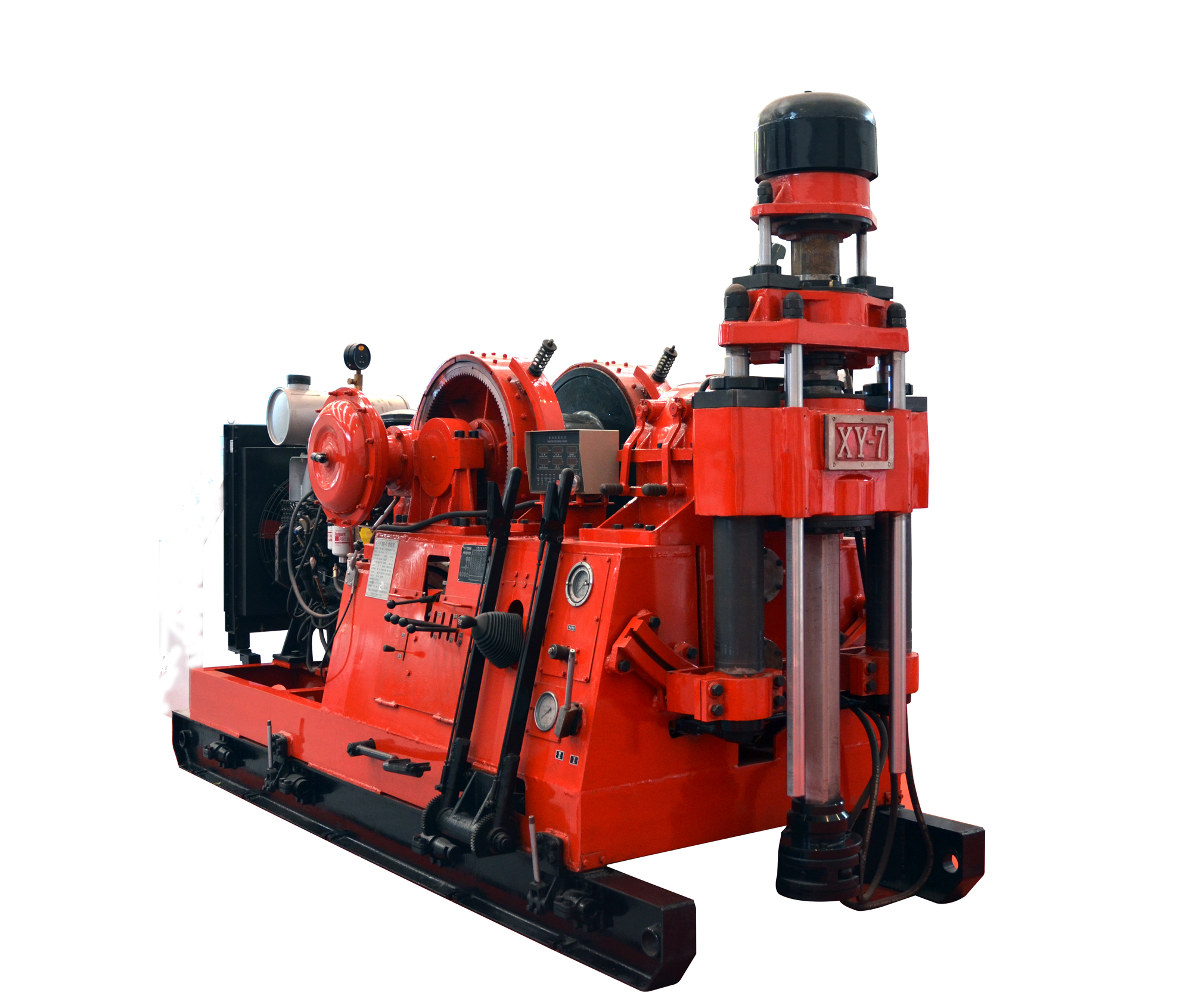 XY-7型鉆機(jī)是我公司新研發(fā)的機(jī)械傳動(dòng)液壓給進(jìn)立軸式巖心鉆機(jī),主要用于金屬、非金屬固體礦床勘探及金鋼石小口徑鉆進(jìn),亦可用于大口徑合金鉆進(jìn);可鉆垂直孔和傾斜孔,也可用于水文、油氣田的勘探及工程鉆孔。XY-7型鉆機(jī)的研制,填補(bǔ)了我公司立軸式巖芯鉆機(jī)2500米左右深孔鉆孔空白,完善了我公司立軸式巖心鉆機(jī)的系列化,方便用戶選擇。